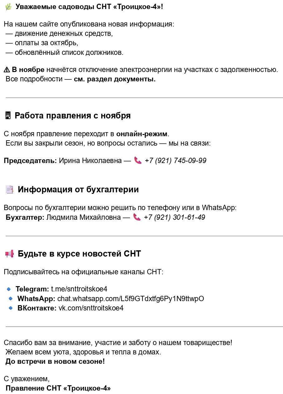- Обращение председателя СНТ от 04.11.2025г.[ Открыть ]